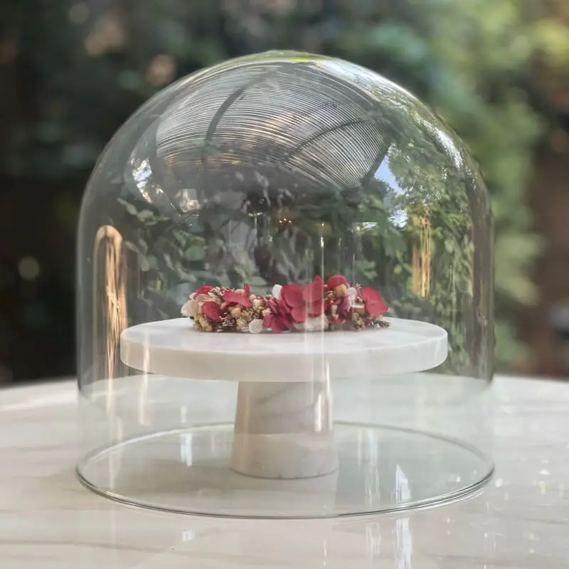 Tocado media corona en tonos blancos con rojos de flores preservadas confeccionado a mano.